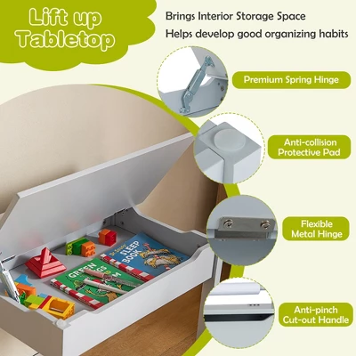 Costway Toddler Craft Table & Chair Set Kids Art Crafts Table WithPaper Roll Holder Grey/White