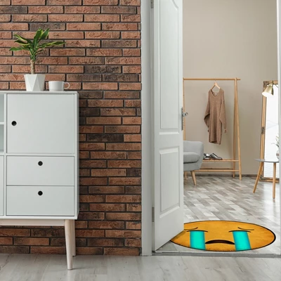 Deerlux Emoji Style Round Funny Smiley Face Kids Area Rug, Sobbing Emoji Rug