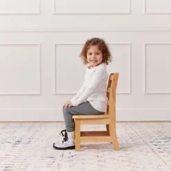 Three-Rung Ladderback Chairs are the perfect seating addition for classrooms, playrooms, or daycares. The ergonomic design encourages little ones to maintain good posture improving circulation and helping maintain focus and productivity. The vented back supports air circulation with built-in handles to easily re-arrange workspaces. Child-sized chairs promote student confidence and independence, and a dedicated workspace for learning encourages children to develop good work habits. Little ones take ownership of their learning as they navigate a kid-sized environment; chairs that are sized just right allow kids to enjoy a book, snack, or seated rest while feeling comfortable and confident in their bodies. The kids’ chairs are constructed from durable rubberwood with a tough UV lacquer that seals the wood surface and resists scratching; chairs feature anti-tip rear legs and rounded corners for added safety. A UV inhibitor makes furniture resistant to ultraviolet light and yellowing. Natural rubberwood is extremely durable and will hold up to everyday use in school, home, or an early childhood environment. Seats feature angled back legs to help reduce tipping and nylon glides to protect floors from scratching and scuffing. Pair with an ECR4Kids Hardwood Kids Table and Birch Classroom Furniture to complete the set; sold separately.