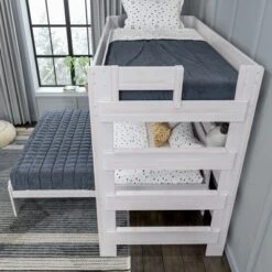 Bring the fun of the farm in with the Modern Farmhouse Twin Over Full L-Shape Bunk Bed from Max & Lily. With a fabulous barnwood finish and enhanced safety, this bed offers the perfect combination of fun and functional that kids and parents love. The durable, non-toxic, low-VOC finish makes this bed a safe choice for any kids room. Sleep and storytimes feel secure thanks to a 400 lb resting weight capacity for each sleeping surface. Solid New Zealand pine wood construction, solid plywood slats and metal support bar provide strong, durable support. Works with standard twin and full-size mattresses and does not require box springs or bunkie boards. Super safe design meets or exceeds Federal safety standards for kids furniture. Ships in one box with instructions and hardware included. 2+ adults make assembly quick and easy. When it’s time for play, this beds’ unique L-shape design frees up plenty of room for kids to be kids. The Modern Farmhouse Twin Over Full L-Shape Bunk Bed from Max & Lily offers exceptional quality and affordability that kids and their parents will enjoy for years to come. Max & Lily is a member of the Maxwood family of brands – the kids furniture experts bringing a tradition of superior quality, safety and fun!
