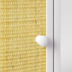 Add space-saving storage to your kid’s room with this Rattan and Wood Bedside Table from Pillowfort™. Standing on four tapered legs, this white bedside table features a wooden construction with rattan weave on the door of the drawer for added natural charm and textured appeal. The tabletop comes with a raised design on three sides and open on one side, making it easy to style a table lamp and place accessories. Designed in a square shape, this rattan and wood bedside table easily fits nexts to a bed and provides ample space for their books and other items with the built-in drawer.